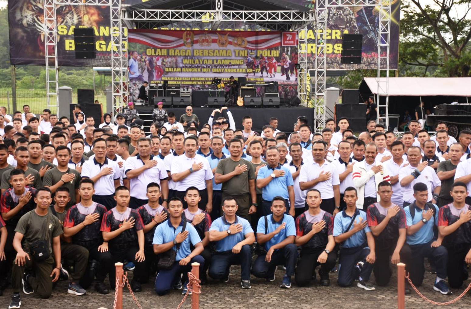 Kegiatan olahraga bersama yang dilaksanakan dalam rangka menyambut HUT Polri ke 77 dengan tema ” Polri Presisi Untuk Negeri, Pemilu Damai Untuk Indonesia Emas”, sekaligus mewujudkan sinergitas TNI – Polri, kegiatan tersebut dibuka dengan ramah tamah, selanjutnya seluruh Personel TNI-Polri melaksanakan peregangan dan melaksanakan senam SKJ ’88, dilanjutkan jalan sehat mengelilingi Area Mako Brigif.