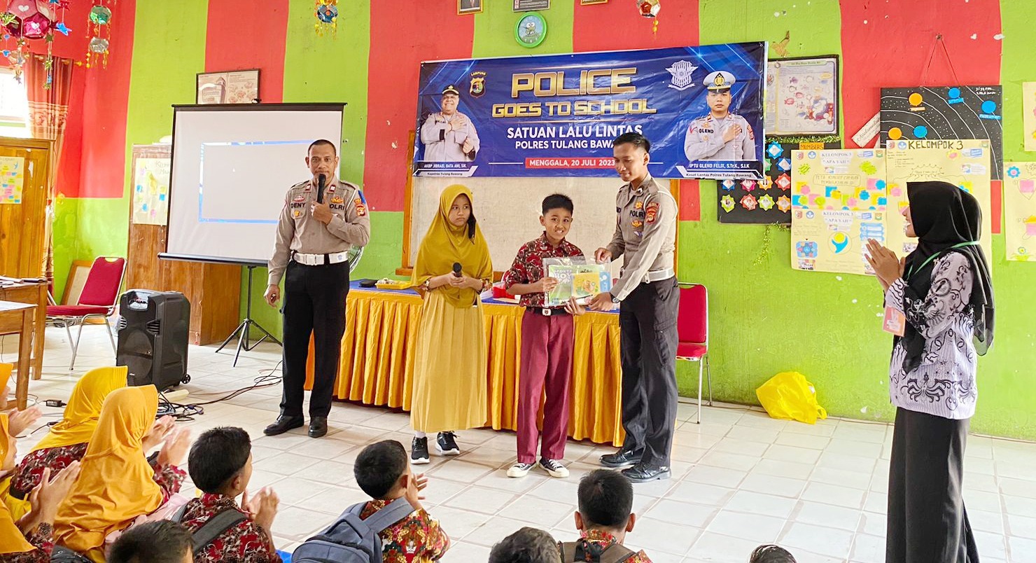 Tulang Bawang, Pojokdesa.co.id – Satuan Lalu Lintas (Sat Lantas) Polres Tulang Bawang, Polda Lampung, menggelar kegiatan Police Goes To School di Sekolah Dasar (SD) yang ada di wilayah hukumnya.