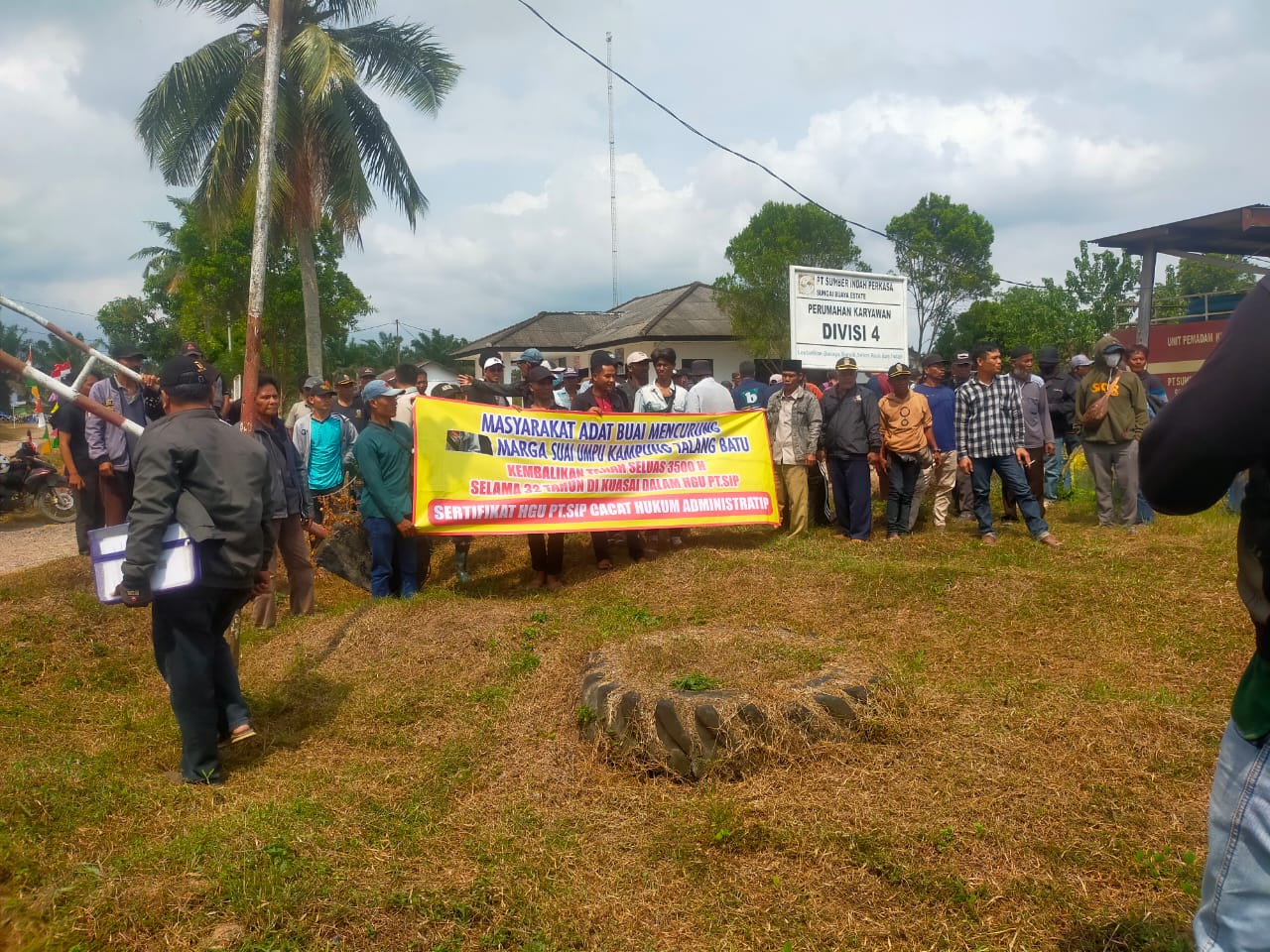 Marga Buay Mencurung Melalui Kuasa Hukumnya Damiri, SE., M.Sc.,Ph.D. bersama pengurus dan warga masyarakat turun ke lokasi untuk mengambil paksa hak tanah ulayat milik Buay atau keturunan Mencurung, Jum’at (18/08/23)