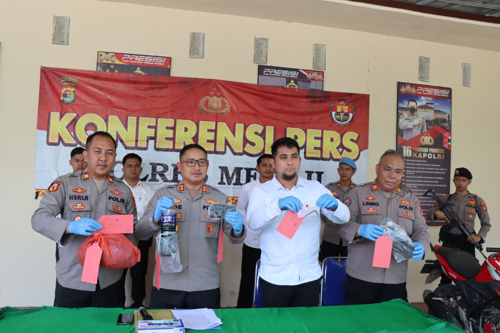 Dalam Konferensi Persnya Kapolres Mesuji AKBP Ade Hermanto S.H, S.IK, CPHR di dampingi Kasi Humas Polres Mesuji AKP Lembo Marlindo, Kasat Reskrim Polres Mesuji IPTU Fajrian Rizki S.T.K, S.IK, M.Si dan Kapolsek Mesuji Timur IPTU Heri Ramanda menjelaskan, bahwa dapat di informasikan, Sat Reskrim Polres Mesuji bersama Polsek Mesuji Timur dan Subsektor Rawa Jitu Utara, telah berhasil Ungkap kasus Pencurian dengan kekerasan yang menyebabkan Kematian atau Pembunuhan dengan Tersangka TR (44) Warga Desa Pangkal Mas Jaya, Kecamatan Mesuji Timur, Kabupaten Mesuji.