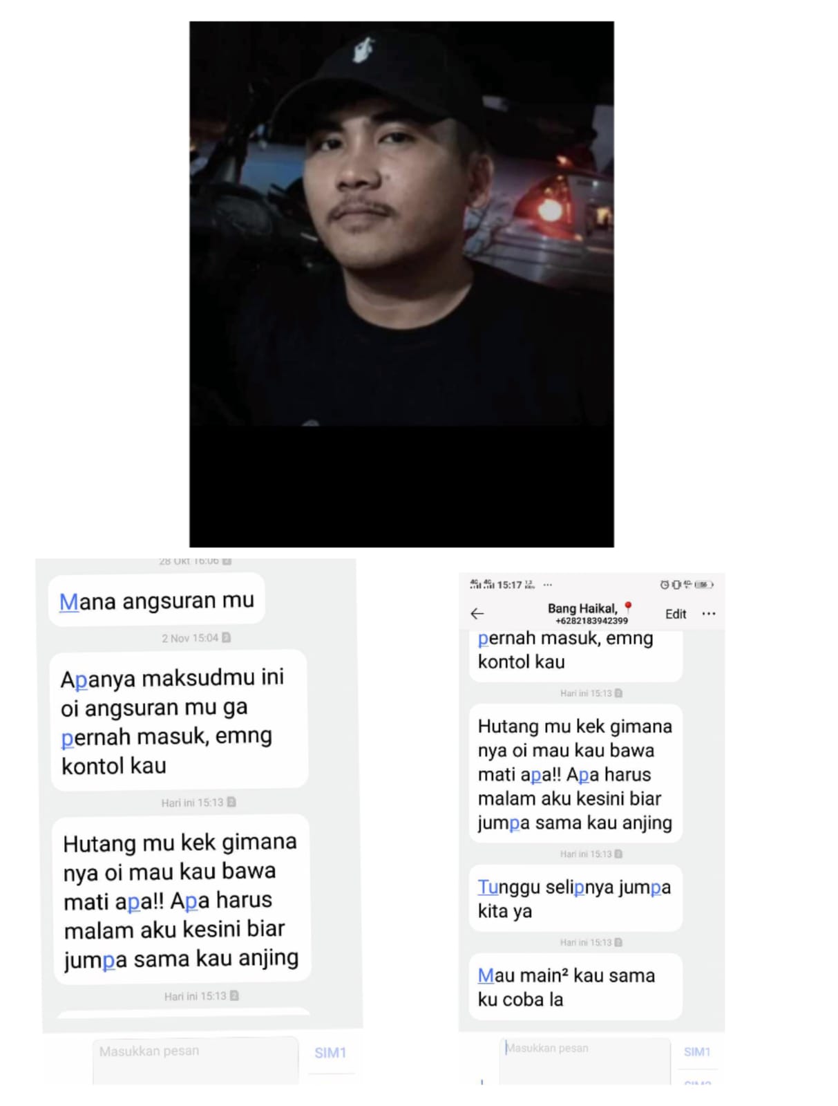 Ia mas , “saya di ancam , saya di hina bahkan saya di caci maki oleh kolektor Bank titil sedangkan saya sudah bilang tempo saya 1 (satu) minggu menunggu cairan Bank,tapi justru oknum Dept Collector semakin marah dan mengucapkan bahasa tidak senonoh via sms dan via telephone”, tuturnya.