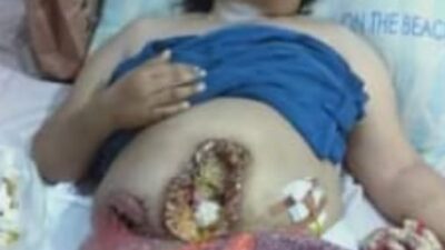 Bukan hanya itu saja, tambah Anjang bercerita, kedua luka yang bekas operasi juga mengalami impeksi dan ada satu yang sudah keliatan agak menghitam, terangnya.