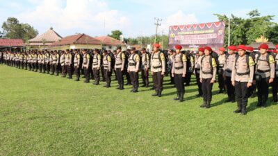 Tuba | Pojokdesa.co.id – Polres Tulang Bawang Gelar Apel Kesiapan dan Serpas Tahap Pungut Suara, AKBP James: Jamin Keamanan Warga Datang Ke TPS Polres Tulang Bawang, Polda Lampung, menggelar Apel Kesiapan dan Pergeseran Pasukan (Serpas) Operasi Mantap Brata (OMB) Krakatau 2024 pada tahap pungut suara Pemilihan Umum (Pemilu) 2024, di lapangan Mapolres setempat, hari Senin (12/02/2024) sore. Apel Kesiapan dan Serpas tersebut dipimpin langsung oleh Dandim 0426 Tulang Bawang, Letkol Inf Triano Iqbal, SIP, M.Si, yang dihadiri oleh Danlanud Pangeran M Bun Yamin, Letko Pnb Yosi Hadi Wiyanto, Kapolres Tulang Bawang, AKBP James H Hutajulu, SIK, SH, MH, MIK, Pj. Bupati Tulang Bawang, Drs Qudrotul Ikhwan, MM, PJU Polres dan Forkopimda Tulang Bawang. Dalam kesempatan tersebut, Dandim 0426 Tulang Bawang juga membacakan amanat Kepala Kepolisian Daerah (Kapolda) Lampung, Irjen Pol Helmy Santika, SH, SIK, M.Si dan mengajak semua stake holder yang terlibat untuk saling merangkul serta bersinergi dalam pengamanan di TPS. “Apel Serpas yang kita gelar ini, merupakan pengecekan kesiapan penyelenggaraan Pemilu mulai dari kesiapan personel, serta kesiapan sarpras sebelum dikerahkan untuk melaksanakan pengamanan pada tahap pemungutan dan penghitungan suara di Pemilu 2024,” kata Letkol Inf Iqbal. Di tempat yang sama, Kapolres Tulang Bawang mengatakan, bahwa pada tahap pungut suara Pemilu 2024 di Kabupaten yang berjuluk Sai Bumi Nengan Nyappur terdapat 1.307 tempat pemungutan suara (TPS), dengan rincian 1.261 TPS kurang rawan, 36 TPS rawan, 8 TPS sangat rawan, dan 2 TPS khusus (berada di Rutan Kelas IIB Menggala). “Untuk mengamankan 1.307 TPS tersebut, kami mengerahkan 264 personel dengan rincian 228 personel dari Polres dan 36 personel BKO Polda Lampung, serta menyiagakan 31 personel BKO Dit Samapta Polda Lampung,” kata perwira peraih Adhi Makayasa Akpol 2004. Kapolres menerangkan, agar seluruh personel yang terlibat langsung dalam Pam TPS pada tahap pungut suara Pemilu 2024 untuk tetap menjalin kebersamaan, kekompakan, dan setia kawan antar sesama personel serta stake holder lainnya. “Laksanakan tugas dengan penuh rasa tanggung jawab dan jangan pernah underestimate, serta tingkatkan kepercayaan dan empati masyarakat terhadap anggota Polri yang sedang melaksanakan tugas Pam TPS,” terang AKBP James. Orang nomor satu di Polres Tulang Bawang ini menambahkan, berikan rasa tenang kepada masyarakat agar tidak resah dengan menyebarnya berita-berita hoaks, dan politik identitas yang dapat merusak persatuan dan kesatuan bangsa. “Yakinkan warga masyarakat, bahwa Polri bersikap netral dan memberikan jaminan keamanan sehingga masyarakat dapat menggunakan hak pilihnya pada tanggal 14 Februari 2024 nanti di TPS dengan rasa aman dan tanpa adanya intimidasi dari pihak manapun,” imbuh perwira dengan melati dua dipundaknya. (toni)
