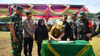 Mesuji | Pojokdesa.co.id : Ketua DPRD Kab Mesuji Menghadiri TMMD di sungai Badak TNI Manunggal Membangun Desa (TMMD) ke 119 di Kabupaten Mesuji resmi dibuka oleh PJ Bupati Mesuji Sulpakar, Selasa 20 Februari 2024. TMMD kali ini dilaksanakan di Desa Sungai Badak, Kecamatan Mesuji, Kabupaten Mesuji dengan sasaran pembangunan ruas jalan dan jembatan. PJ Bupati Mesuji Sulpakar membuka kegiatan TNI Manunggal Membangun Desa (TMMD) ini sangat mendukung Program Pembangunan Daerah Kabupaten Mesuji. kerjasama antara TNI dan Masyarakat seperti ini merupakan sikap yang harus terus dipertahankan kesinambungannya, dan diharapkan TNI akan menjadi Motor Pembangkit Motivasi Masyarakat dalam melaksanakan Pembangunan Daerah. “Dapat disampaikan bahwa kerjasama melalui Program TMMD antara Pemerintah Kabupaten Mesuji dengan Kodim 0426/Tulang Bawang dilaksanakan secara Swakelola Sebesar Rp. 750.000.000 untuk Pembangunan Berupa Peningkatan Badan Jalan Panjang 1.122 Meter lebar 6 Meter, pembangunan 1 Unit Jembatan Panjang 6 meter, Lebar 5 meter, dan Pembuatan 1 Unit Sumur Bor,” jelas Sulpakar. Melalui Pembangunan beberapa infrastruktur tersebut, lanjut dia, diharapkan akan berdampak pada peningkatan perekonomian masyarakat.