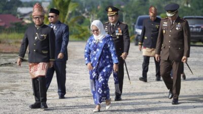 Mesuji | Pojokdesa.co.id : Ketua DPRD Hj. ELFIANAH menghadiri Upacara dalam rangka memperingati Hari ulang Tahun Provinsi Lampung Ke- 60 dengan Tema “Harmoni Dalam Kolaborasi Untuk Lampung Berjaya” sekaligus Hari Ulang Tahun Satuan Polisi Pamong Praja Ke 74 dengan Tema “Peran Satpol PP dan Satlinmas Dalam Menciptakan Trantibum Linmas Untuk Mendukung Pemilu dan Pilkada 2024”, bertempat di halaman lapangan Kantor Bupati Mesuji, Desa Wiralaga Mulya, Kecamatan Mesuji, Kabupaten Mesuji.