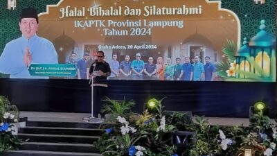 Penjabat Bupati Mesuji selaku Ketua IKAPTK Se-Provinsi Lampung Dr. Drs. Sulpakar, M.M. menghadiri acara Silaturahmi Akbar dan Halal Bihalal 1445 Hijriah keluarga besar Ikatan Keluarga Alumni Pendidikan Tinggi Kepamongprajaan (IKAPTK) Se-Provinsi Lampung di Graha Adora, Kecamatan Gedung Tataan, Kabupaten Pesawaran, Sabtu (20/04/2024).