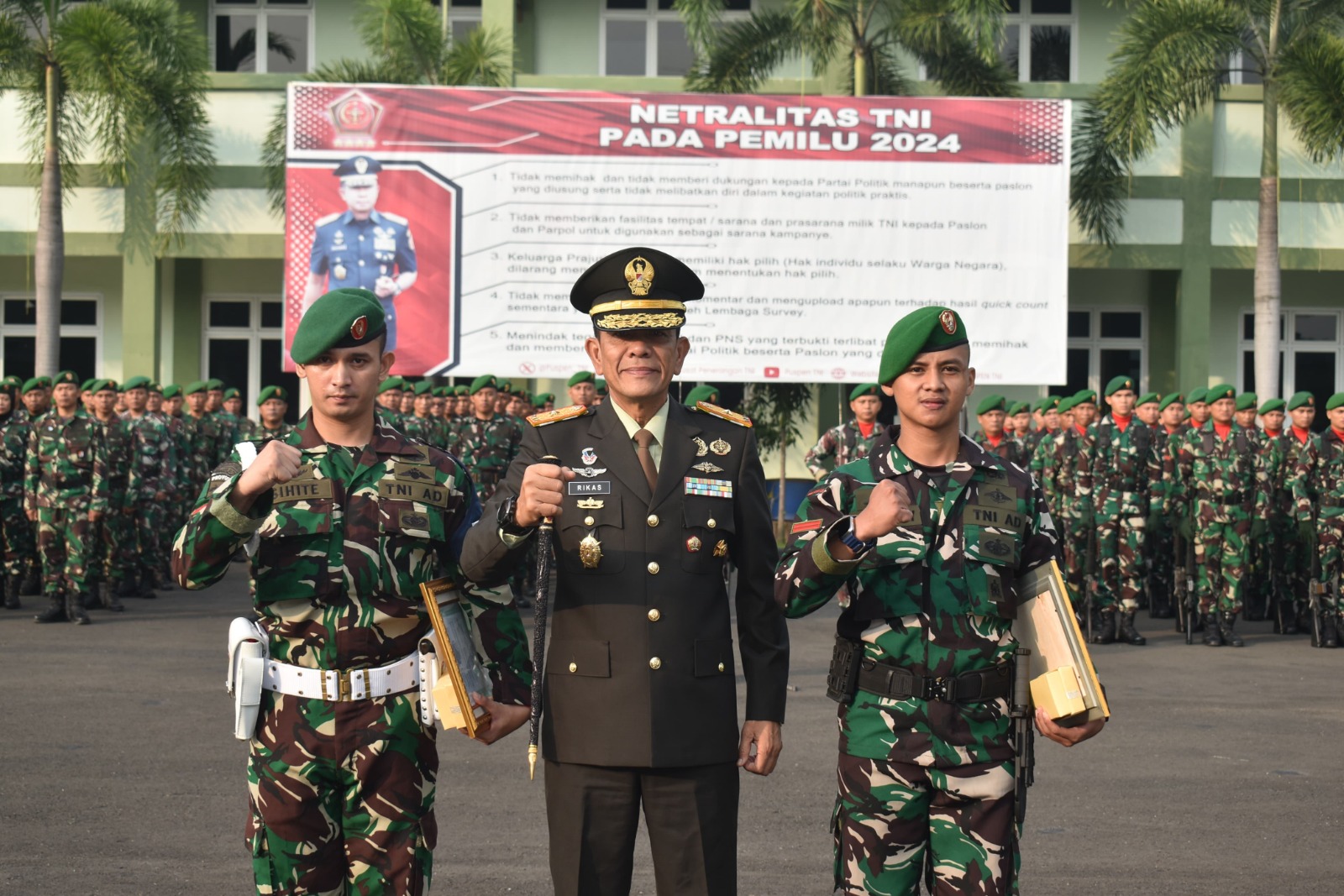 Bandar Lampung,Pojok Desa.Co.Id – Usai dilaksanakannya upacara memperingati Hari Lahir Pancasila Korem 043/Gatam, Sabtu (1/6/2024), yang dilaksanakan di lapangan upacara Makorem 043/Gatam Jl. Teuku Umar Penengahan Bandar Lampung. Komandan Korem 043/Gatam Brigjen TNI Rikas Hidayatullah, S.E., M.M., berikan penghargaan kepada 2 orang Prajurit Korem 043/Gatam yang berprestasi di Kejuaraan Tinju Amatir Se-Sumbagsel Lampung Boxing Competition III dan Seleksi Pra Popnas Lampung Tahun 2024.