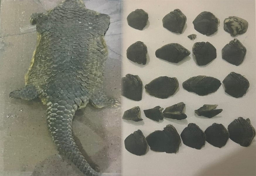 “Terjadilah tawar menawar harga dan akhirnya pelaku menyetujui transaksi penjualan dengan cara COD (bayar di tempat) dengan lokasi di RM Barokah, Kampung Astra Ksetra. Saat pelaku tiba di lokasi dengan membawa trenggiling yang sudah mati, petugas kami yang sudah menunggu langsung melakukan penangkapan,” jelas perwira dengan balok kuning tiga dipundaknya.