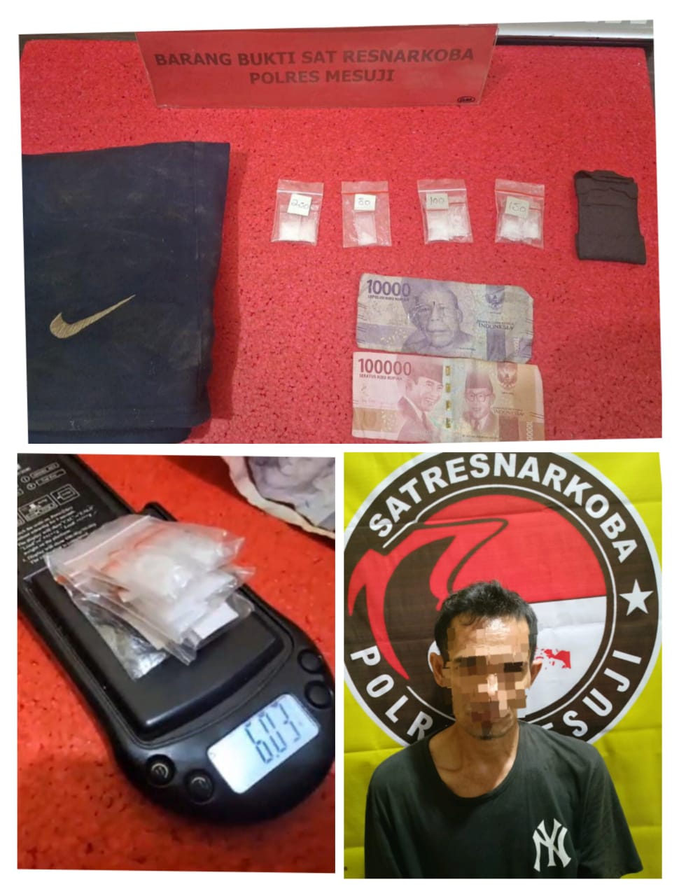 Lebih lanjut, Tersangka di tangkap bersama Barang Bukti 1 (satu) buah celana pendek warna biru merek nike, 1 (satu) buah dompet kecil warna hitam, 4 (empat) buah plastik klip ukuran sedang yang masing-masing plastiknya berisikan narkotika jenis sabu dengan berat bruto 6,03 (enam koma nol tiga) gram dan uang tunai sebesar Rp.110.000 (seratus sepuluh ribu). Ungkap Kasat Narkoba
