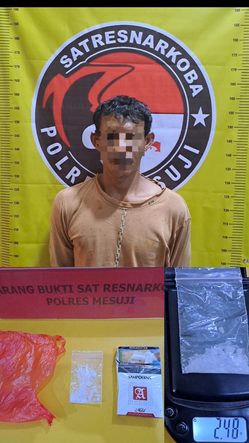 Mesuji | Pojokdesa.co.id : Jajaran Sat Res Narkoba Polres Mesuji Polda Lampung kembali mengamankan Seorang Tersangka asal Kecamatan Way Serdang Kabupaten Mesuji, karena kedapatan membawa Narkotika jenis sabu. Minggu (14/07/24)