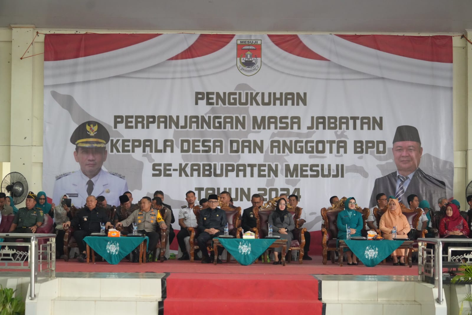 Mesuji | Pojokdesa.co.id : Penjabat Bupati Mesuji Febrizal Levi Sukmana melaksanakan Pengukuhan Perpanjangan Masa Jabatan Kepala Desa dan Anggota BPD se-Kabupaten Mesuji Tahun 2024 di Gedung Serba Guna, Taman Keanekaragaman Hayati, Kecamatan Tanjung Raya, Kamis (18/07/2024).