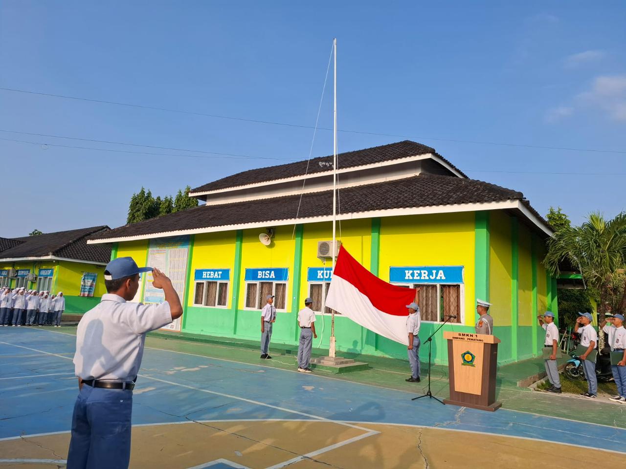 Mesuji | Pojokdesa.co.id : Berikan himbauan kepada Siswa Siswi SMK N 1 Simpang Pematang, Kasat Lantas Polres Mesuji menjadi Pembina Upacara saat melaksanakan Upacara Bendera. Senin (05/08/24)