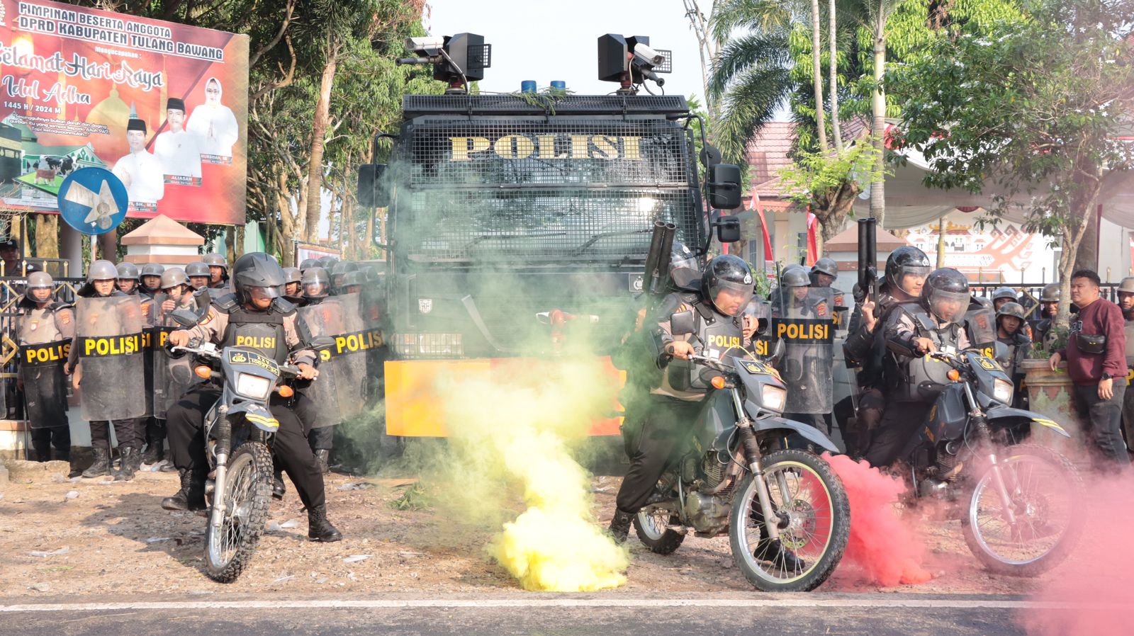 Polres Tulang Bawang Gelar Simulasi Pengamanan Pelantikan Anggota Legislatif Secara On The Spot