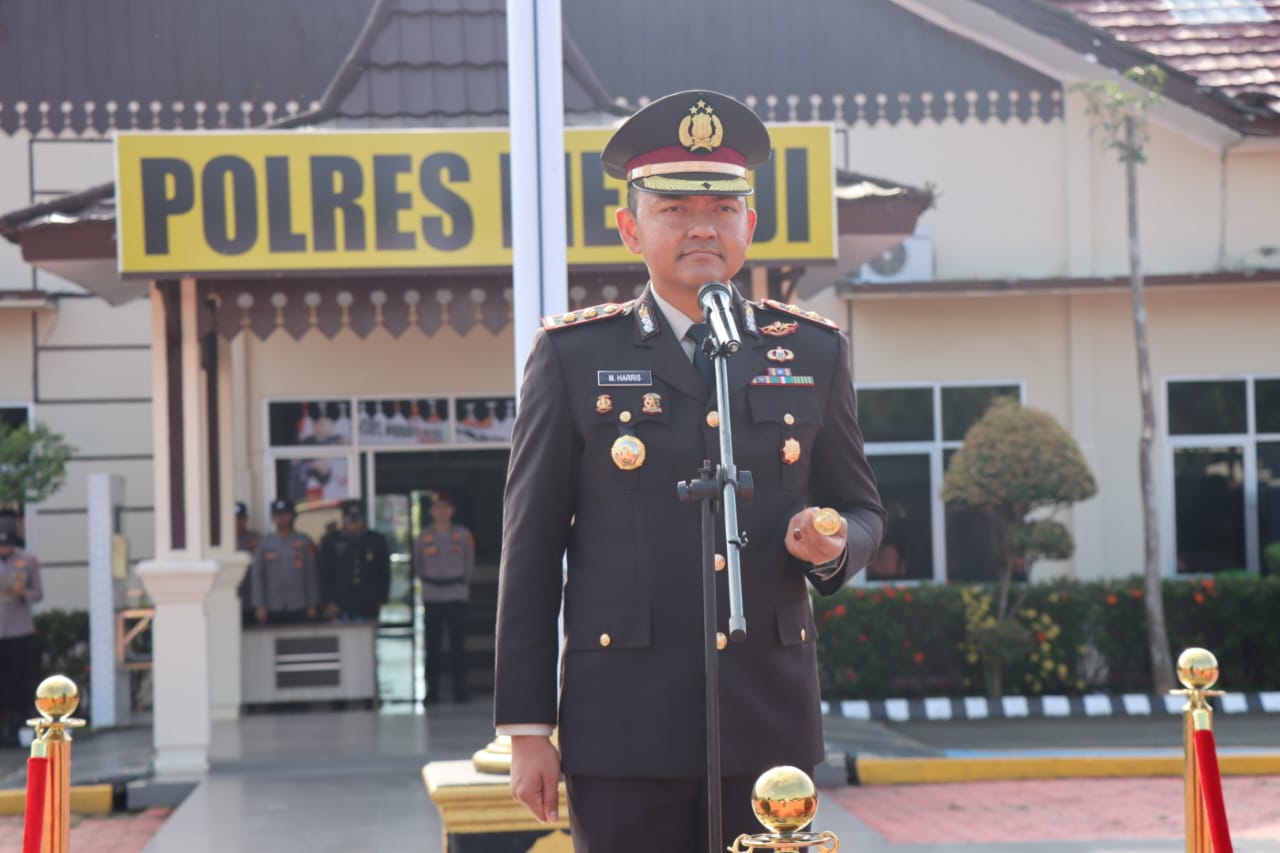 Hadir dalam Upacara Kapolres Mesuji AKBP Muhammad Harris S.H, S.IK, M.IK, Waka Polres Mesuji Kompol Heru Sulistiyananto S.H, M.H, Para PJU Polres Mesuji, Para Kapolsek dan Kapolsubsektor, serta Personil Polres Mesuji dan Jajaran.