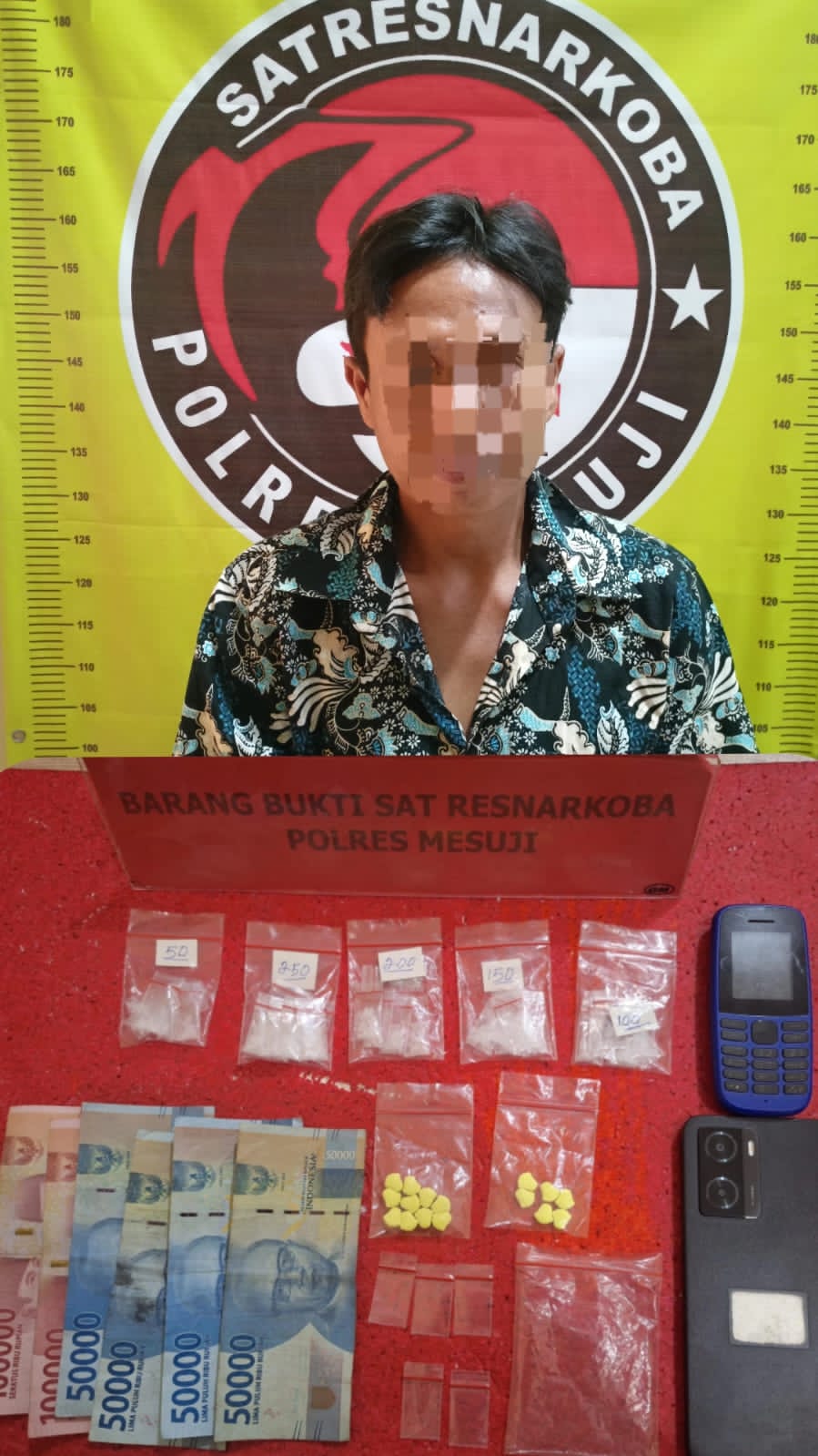 Mesuji | Pojokdesa.co.id : Seorang Pengedar Narkoba berhasil di tangkap Jajaran Sat Res Narkoba Polres Mesuji di rumahnya di Dusun Tebing Tinggi, Desa Talang Batu, Kecamatan Mesuji Timur, Kabupaten Mesuji. Sabtu (26/10/24)