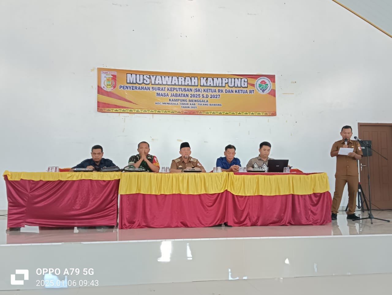 Tuba | Pojokdesa.co.id : Pemerintah kampung Menggala kecamatan Menggala Timur kabupaten Tulangbawang, Provinsilampung mengelar Rapat Musyawarah Kampung awal tahun 2025 dalam rangka penyerahan Surat Keputusan (SK) Ketua RK /RT Masa Jabatan 2025-2027 Senin 6 Januari 2025.