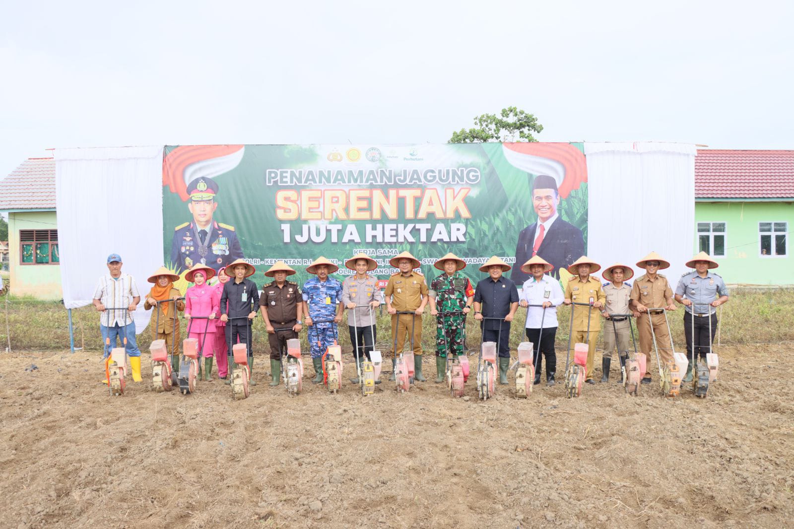 “Hari ini, saya bersama Forkopimda, PJU Polres, Bhayangkari dan Instansi terkait lainnya melaksanakan kegiatan penanaman jagung serentak 1 juta hektar yang dipusatkan di Kampung Jaya Makmur,” ucap AKBP Yuliansyah disela-sela kegiatan.