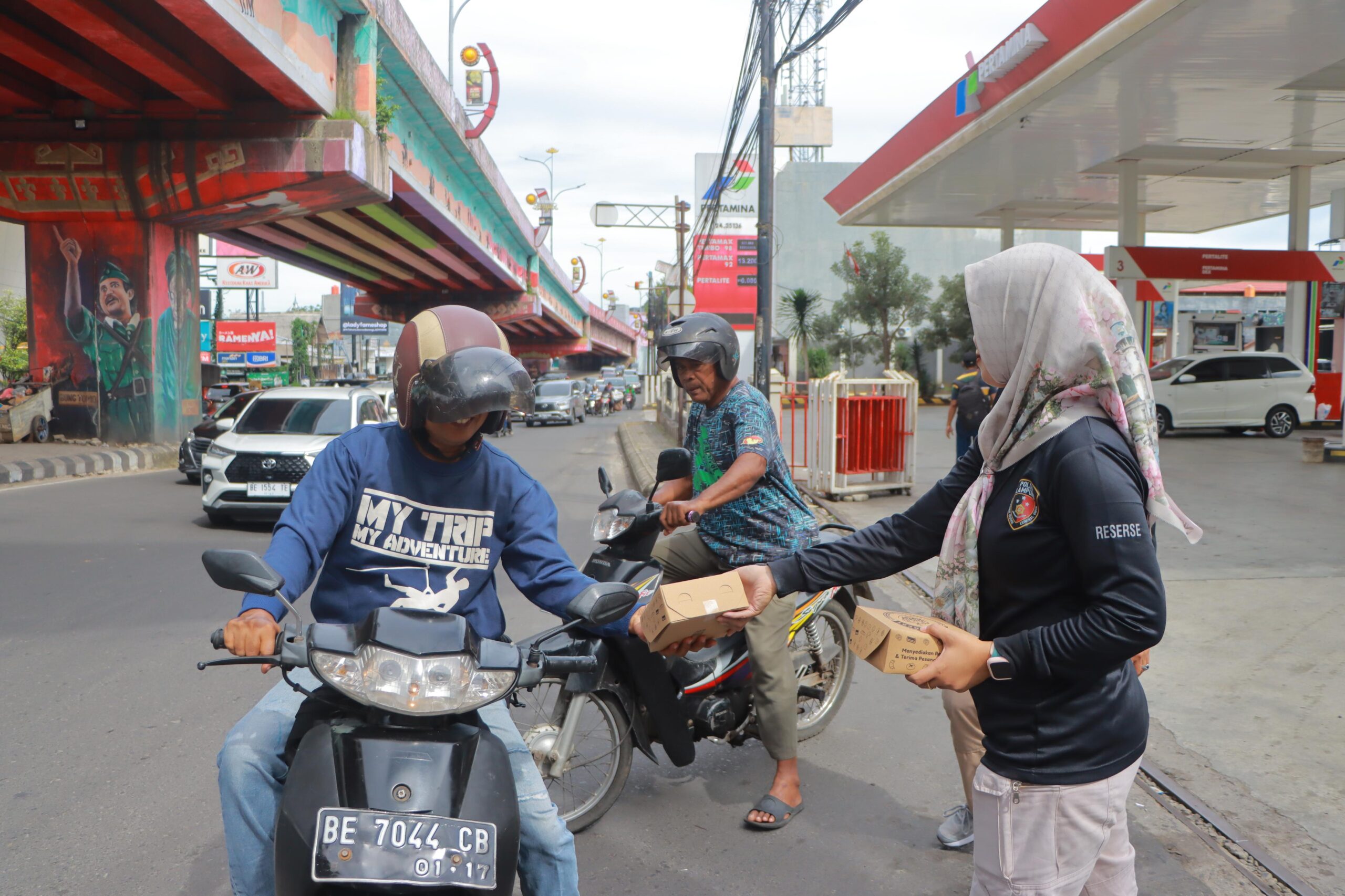 Berbagi Takjil,Cara Polwan Lampung Pererat Hubungan Dengan Masyarakat