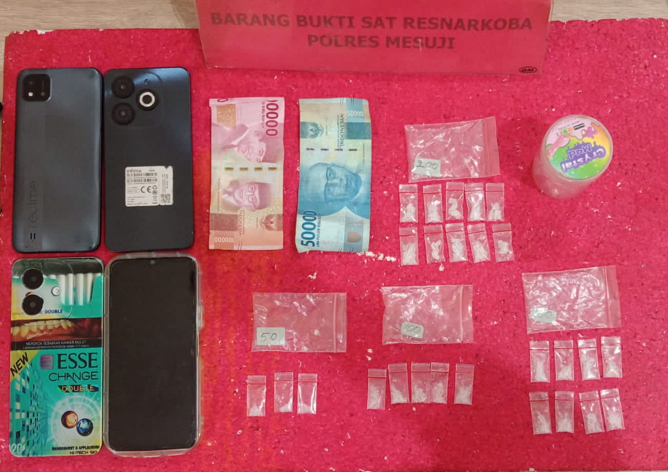 “Saat ini tersangka bersama barang bukti telah diamankan di Mapolres Mesuji guna penyidikan dan pengembangan lebih lanjut, atas perbuatannya tersangka akan di jerat dengan Pasal 114 Ayat (2) Subsider Pasal 112 Ayat (2) Undang-Undang Republik Indonesia Nomor 35 Tahun 2009 Tentang Narkotika”. Pungkasnya.