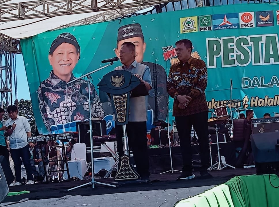 Dengan rasa Syukur kita panjatkan kepada Allah (SWT) Tuhan Yang Maha Esa, kita bisa sama-sama hadir dalam acara Pesta Rakyat ini dengan keadaan sehat Walafiat.Kita mengadakan acara Pesta Rakyat semua ini atas partisipasi tim relawan (QODHAM) kita juga menyembelih (5) ekor kerbau, itu menandakan kita selalu patuh ibadah Sholat pardhu (5) waktu untuk itu mari kita selalu taat dalam Sholat Pardhu (5) waktu berjama’ah di masjid, ucap Bupati;