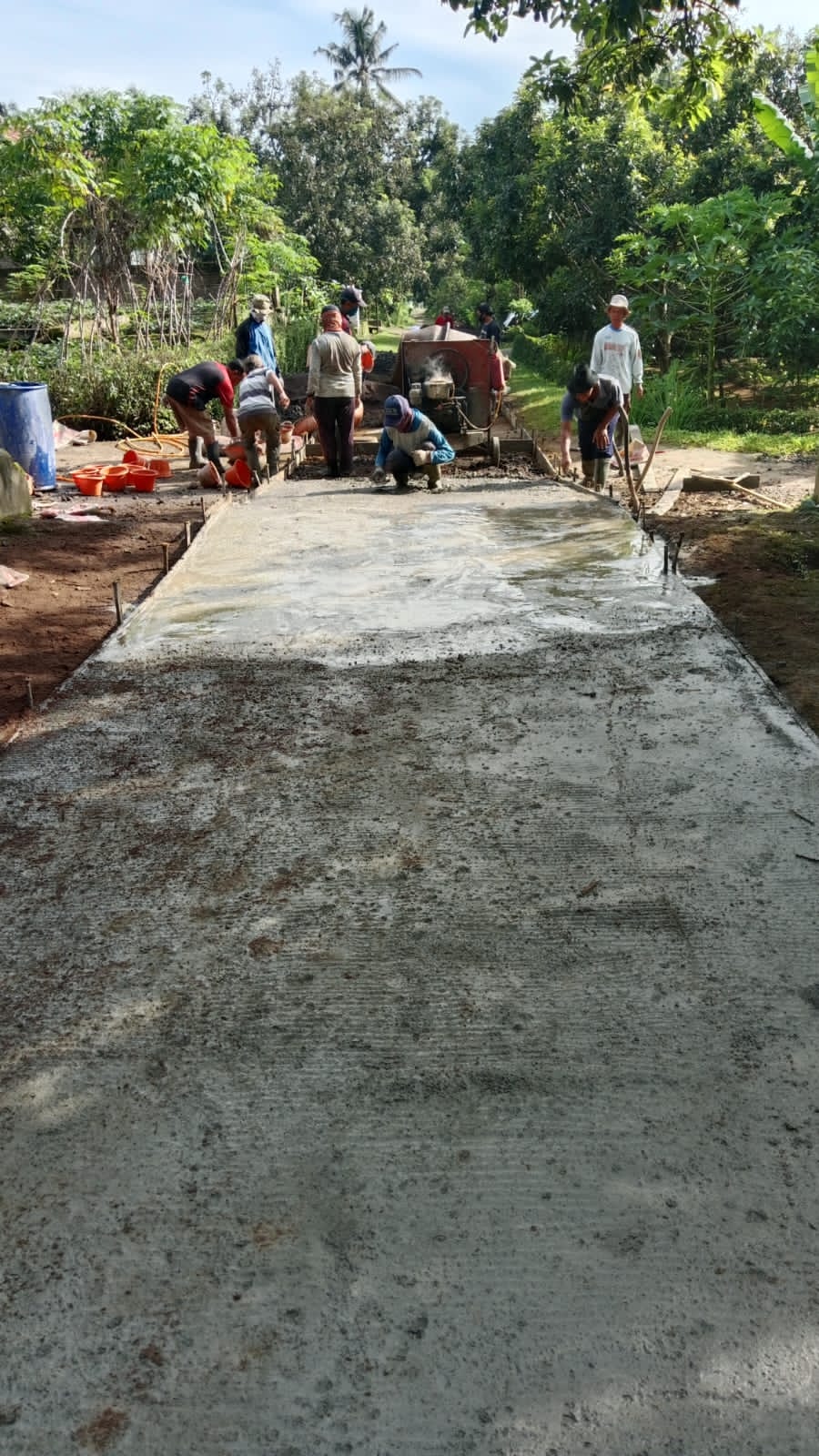 Setelah persiapan lahan selesai, dilanjutkan dengan pengecoran rabat beton yang melibatkan tenaga kerja dari warga setempat