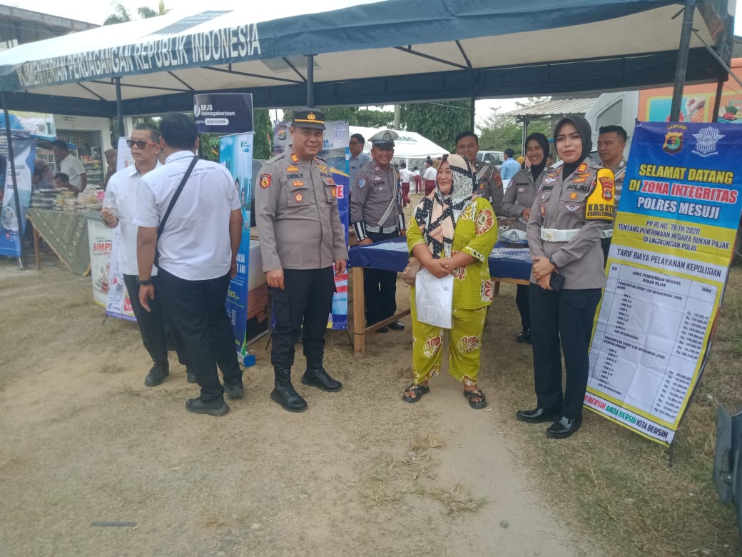 Mesuji | Pojokdesa.co.id : Pada kesempatan acara Pasar Murah yang di gelar oleh Pemerintah Daerah Mesuji, Forkopimda dan BUMN serta Swasta, Jajaran Sat Lantas Polres Mesuji membuka Stan Pelayanan SIM untuk Masyarakat Kabupaten Mesuji. Senin (11/08/25)