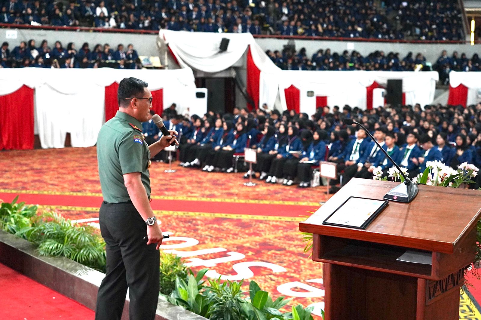 Di hadapan ribuan mahasiswa, Danrem 043/Gatam menekankan bahwa Indonesia adalah negara yang sangat kaya, memiliki keindahan budaya dan peradaban yang tinggi, terdiri dari 1.350 suku bangsa, 746 bahasa daerah, dan 17.504 pulau.