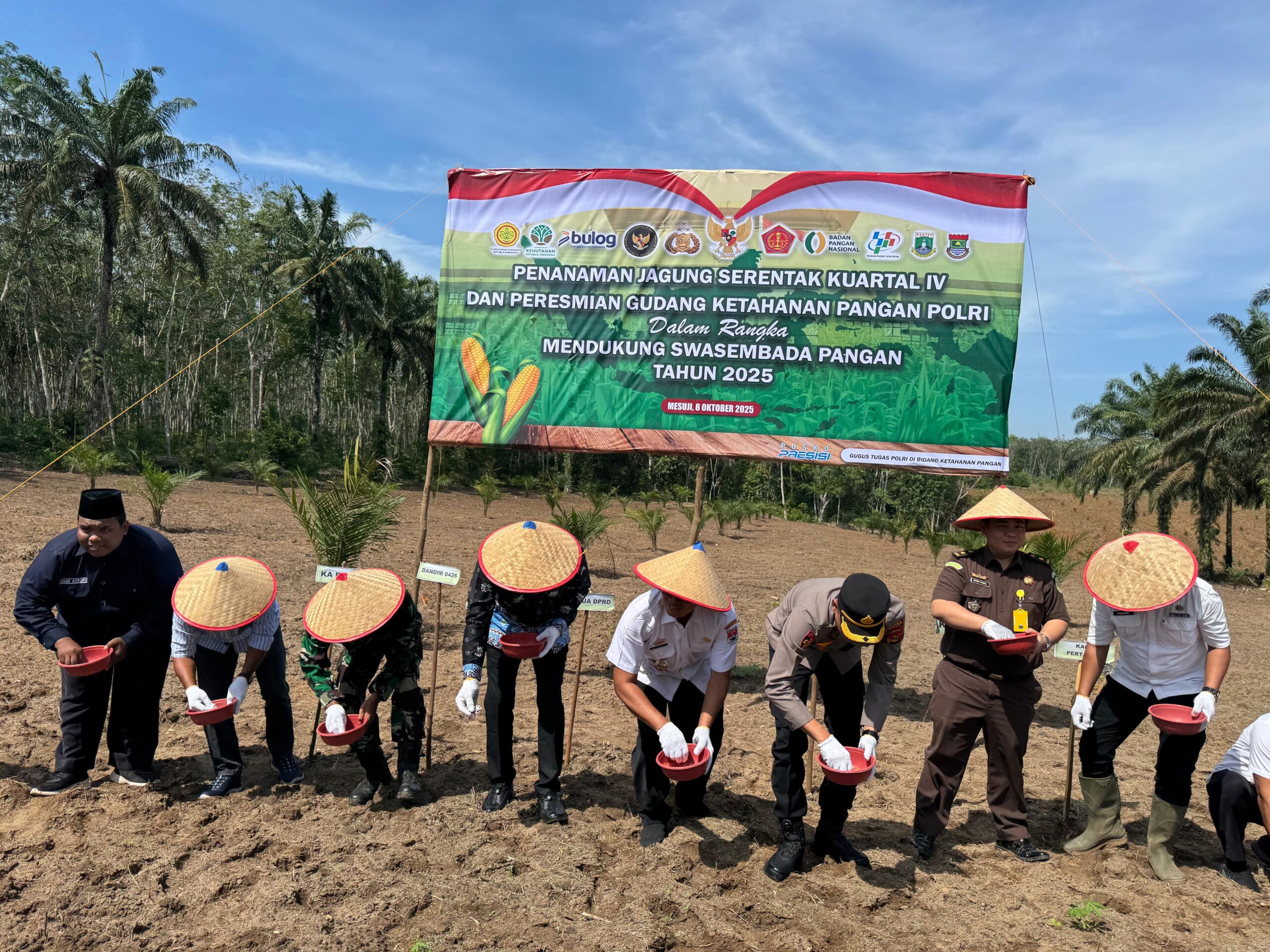 Mesuji | Pojokdesa.co.id : Dipimpin oleh Waka Polres Mesuji Jajaran Polres Mesuji melaksanakan penanaman jagung serentak kuartal ke IV sekaligus peresmian gudang ketahanan pangan Polri bertempat di Desa Bangun Jaya Kecamatan Tanjung Raya Kabupaten Mesuji. Rabu (08/10/25)