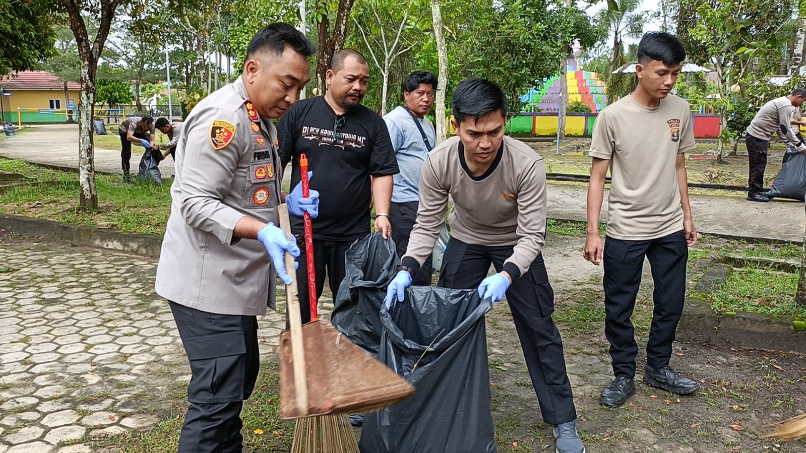 Mesuji | Pojokdesa.co.id : Kapolres Mesuji mengusung semangat gotong royong dengan memimpin langsung kegiatan pembersihan lingkungan di objek wisata Water Park Taman Kehati, Desa Mekar Sari, Kecamatan Tanjung Raya, Kabupaten Mesuji. Jumat (06/02/26)