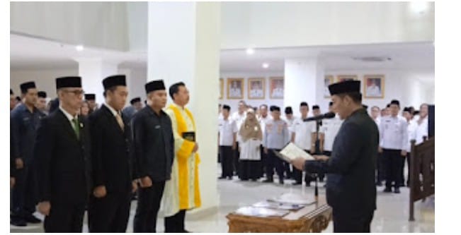 Pesisir Barat | Pojokdesa.co.id : Ratusan Pegawai Negeri Sipil (PNS) di lingkungan Pemerintah Kabupaten Pesisir Barat resmi dilantik dan diambil sumpah jabatannya oleh Bupati Pesisir Barat, Dedi Irawan, Pelantikan tersebut berlangsung di Lobby Teluk Stabas Lantai 1 Gedung Marga Sai Batin .Rabu (11/03/2026).