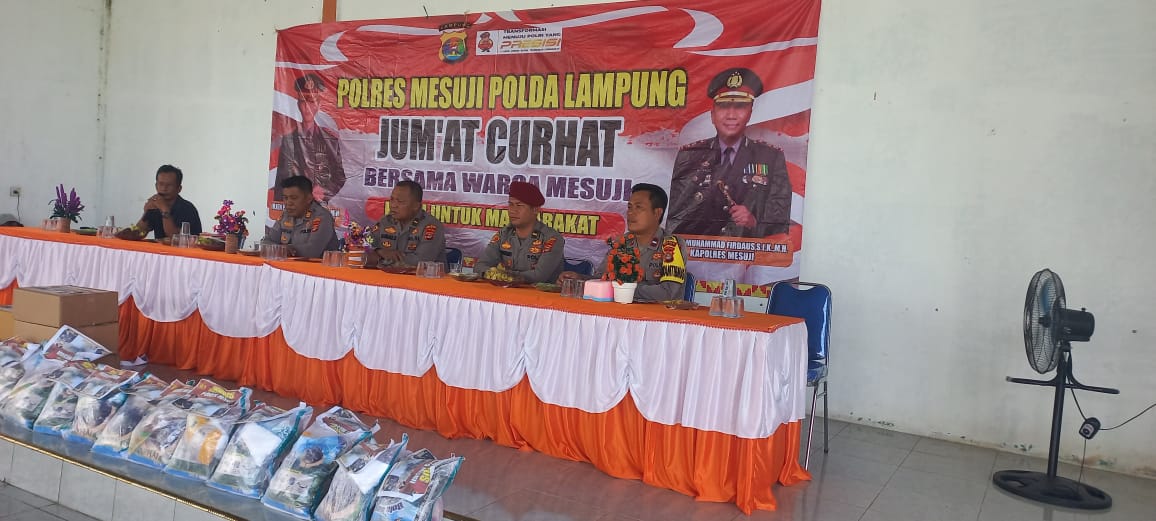 Kapolres Mesuji AKBP Dr. Muhammad Firdaus S.Ik, M.H melalui Kasubagdalops AKP Subur S.E menyampaikan bahwa kegiatan Jumat Curhat tersebut rutin dilaksanakan sebagai wadah komunikasi dua arah. Selain itu, pembagian sembako merupakan wujud empati dan kepedulian institusi terhadap kondisi sosial masyarakat.