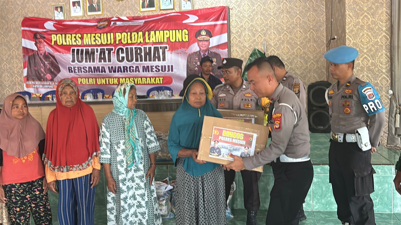 Dalam kegiatan yang bertujuan mempererat tali silaturahmi dan menyerap aspirasi masyarakat tersebut, Polres Mesuji juga menyalurkan bantuan sosial berupa 25 paket sembako kepada warga kurang mampu yang berada di lingkungan setempat. Penyerahan bantuan dilakukan langsung oleh perwakilan personel Polres Mesuji kepada para penerima manfaat.